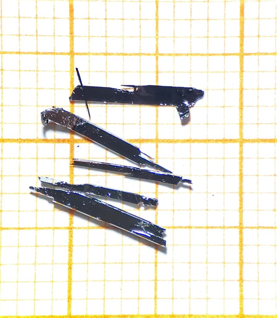 We are happy to share a piece of wonderful news that our first batch of freshly grown single crystals are out of the furnace. See the optical image on the right. The slender, needle-like crystals are almost 1cm long, with a natural flat surface, in accordance with their van der Waals layered nature. Congratulations to Yifan and Peter for their efforts.